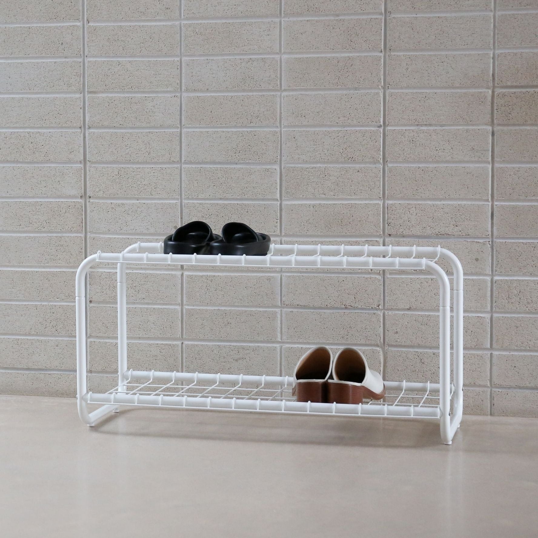 Built from powder-coated steel with a minimal wire-grid design, the Double Tier Shoe Rack delivers streamlined storage without taking over the space. Two open tiers provide a sturdy, breathable platform for daily rotation footwear, from sneakers to sandals and everything in between.